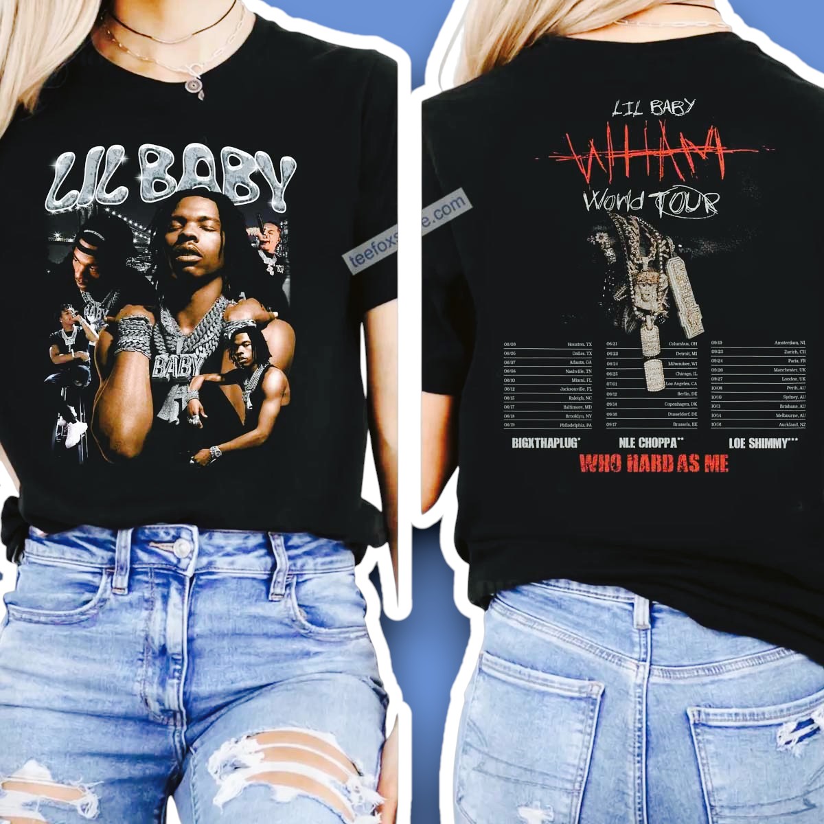 The phrase “WHAM” itself, which stands for “Who Hard As Me,” is central to the shirt’s meaning. It embodies Lil Baby’s confident persona, his assertive image, and his undeniable impact on the music industry. By wearing this shirt, fans are not only showing their support for the artist but also embracing the attitude of self-belief and strength that Lil Baby consistently projects through his music. It’s a statement piece that resonates with those who admire his journey from the streets of Atlanta to global superstardom.