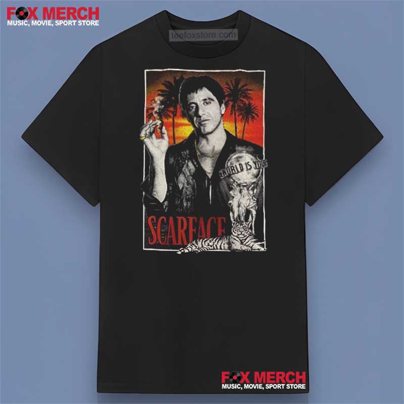 Step into the ruthless and glamorous world of 1980s Miami with this striking tribute to the cinematic classic, Scarface. This unisex t-shirt captures the raw intensity and unforgettable style of the iconic film, making it a powerful statement piece for fans of crime dramas and vintage aesthetics alike.